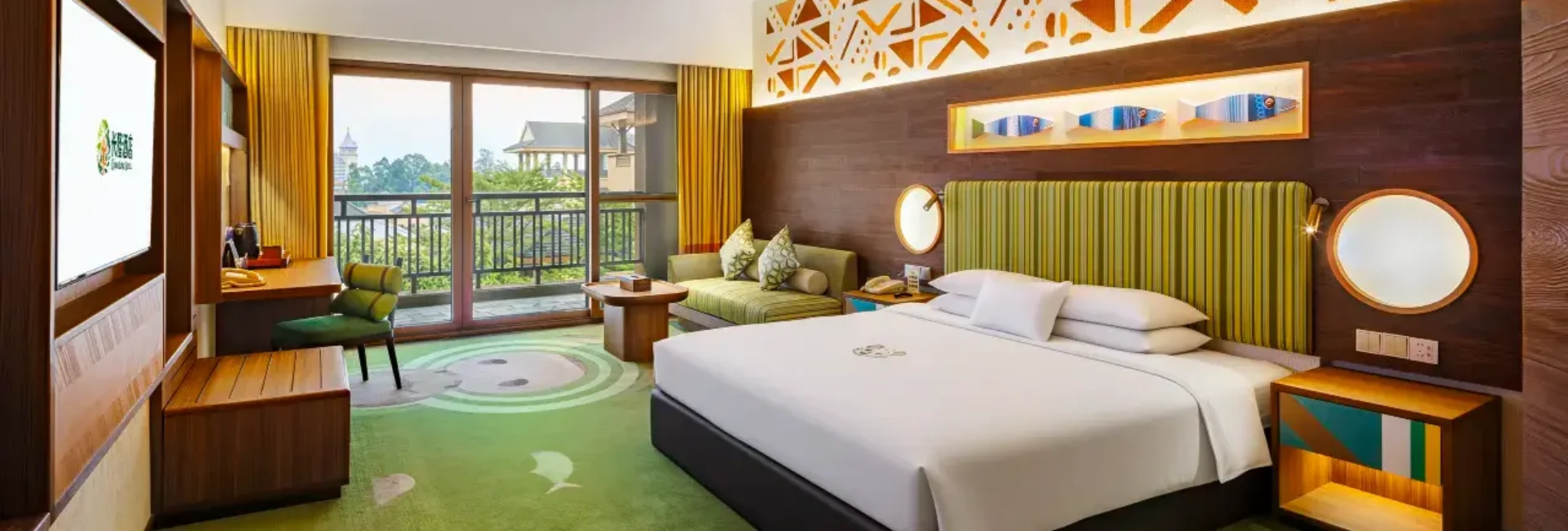 Prepare to ignite your spirit of discovery in our uniquely themed Exploration Room – King Bed at the Chimelong Hotel, perfectly positioned for your thrilling visit to the Guangzhou Chimelong Safari Park.